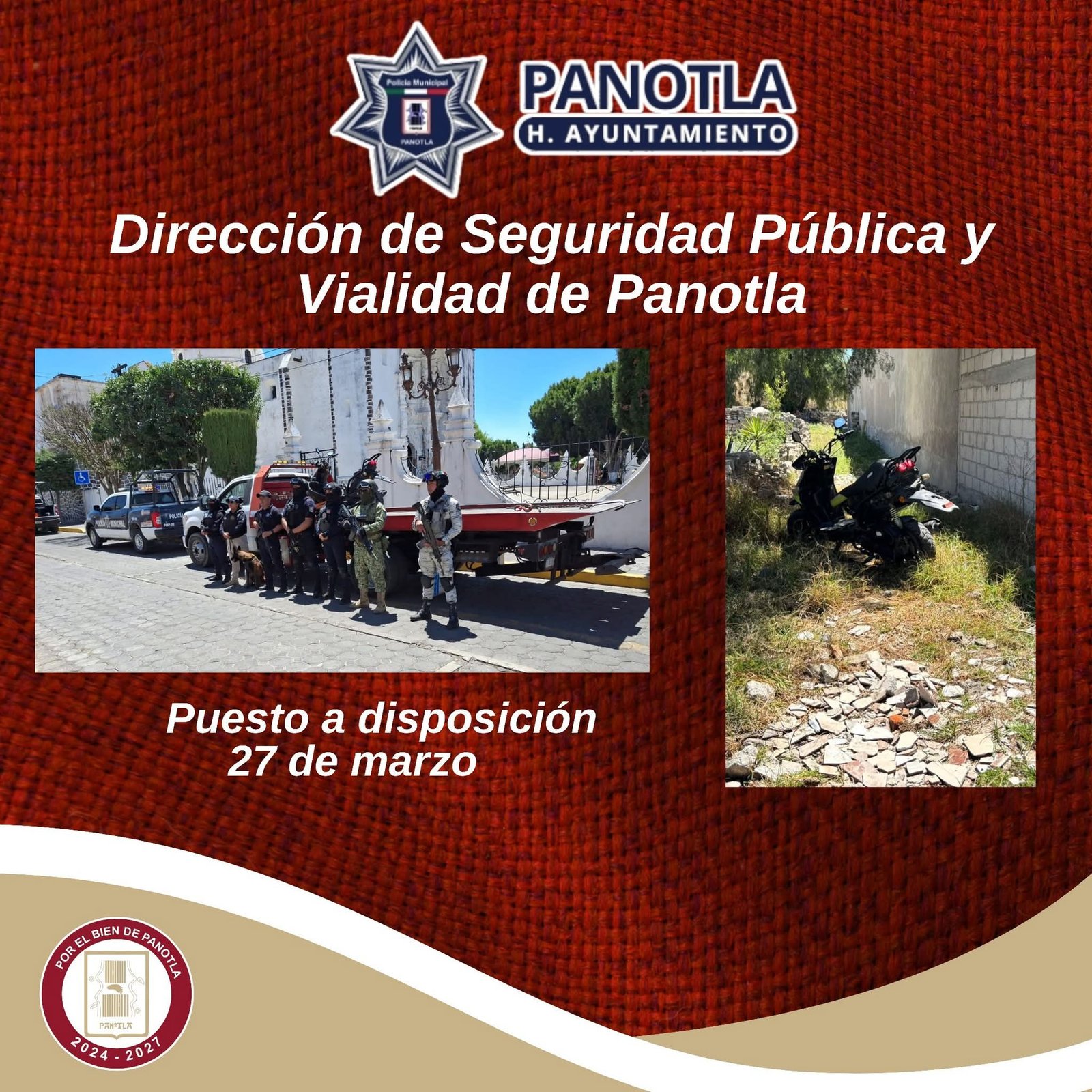 El Gobierno Municipal de Panotla refrenda su compromiso de mantener acciones firmes y coordinadas que garanticen la tranquilidad de las familias, actuando con responsabilidad y cero tolerancia ante cualquier hecho que vulnere la seguridad.